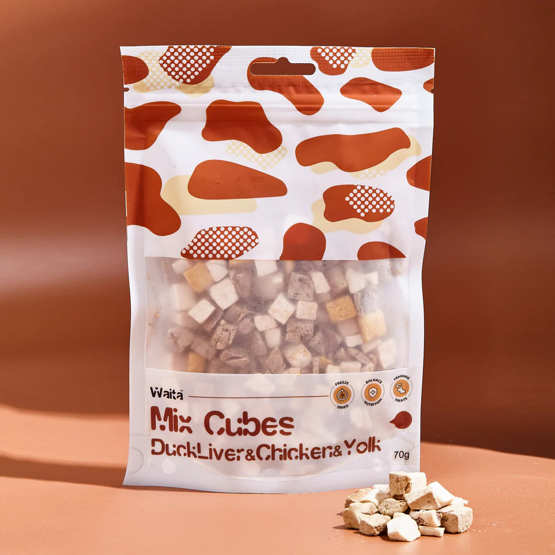 Waita Freeze-Dried Mixed Cubes offer a nourishing blend of three functional ingredients — chicken, duck liver, and egg yolk — all gently freeze-dried into bite-sized cubes. This nutrient-rich mix delivers a variety of textures and flavours while supporting muscle development, immune health, and overall vitality.