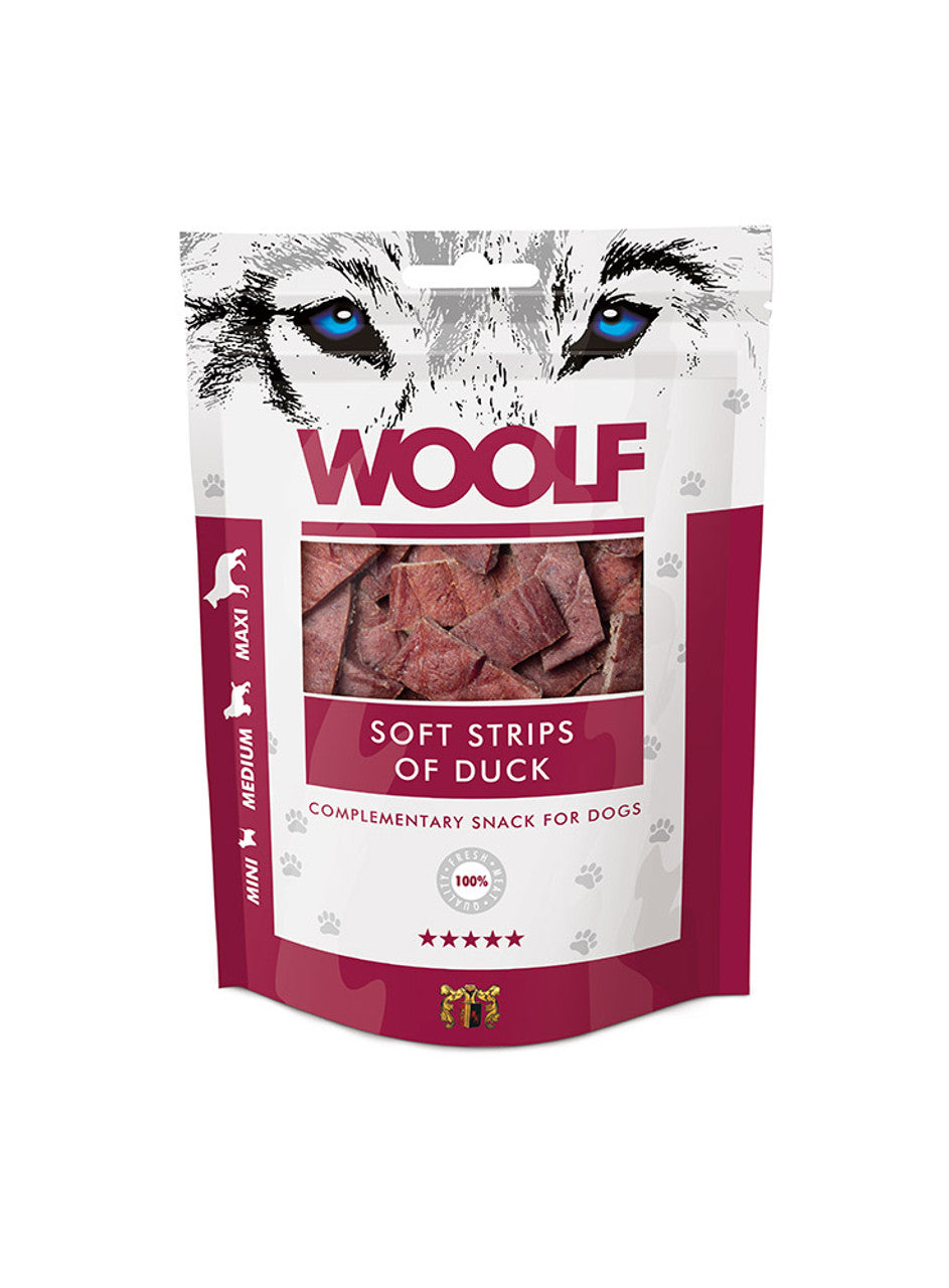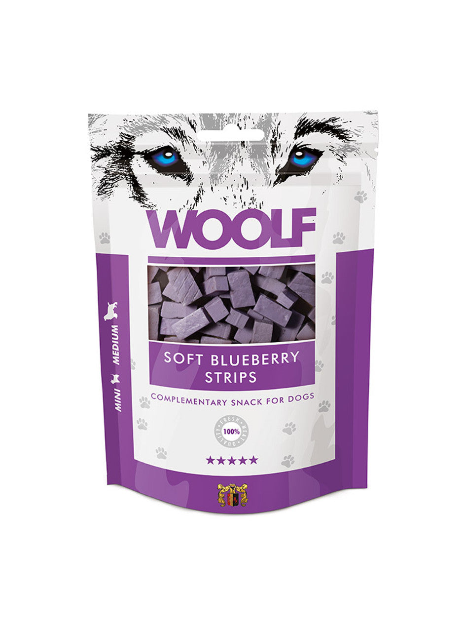 These Soft Blueberry Strips are made of 100% protein sources to provide the highest quality and the best nutritional intake. The Woolf snack, once cooked, is packed without any chemical additives, preservatives or colourings.