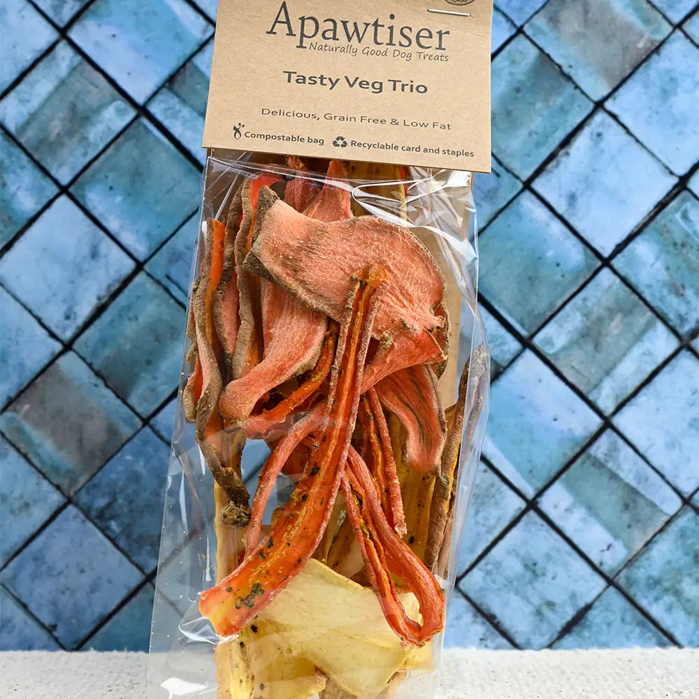 These low fat treats are made from slices of carrot, parsnip and sweet potato all coated in a moreish mix of peanut butter, herbs and seaweed. A great way for your dog to enjoy their veg